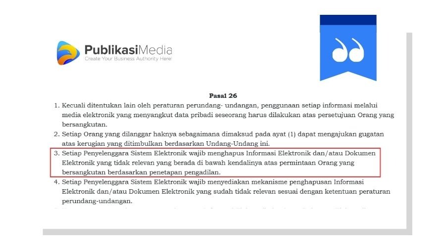 Melalui putusan pengadilan, Mahkamah Agung (MA) bahkan dapat memerintahkan mesin pencari seperti Google untuk menghapus informasi elektronik tertentu sesuai pasal 26 UU ITE.3