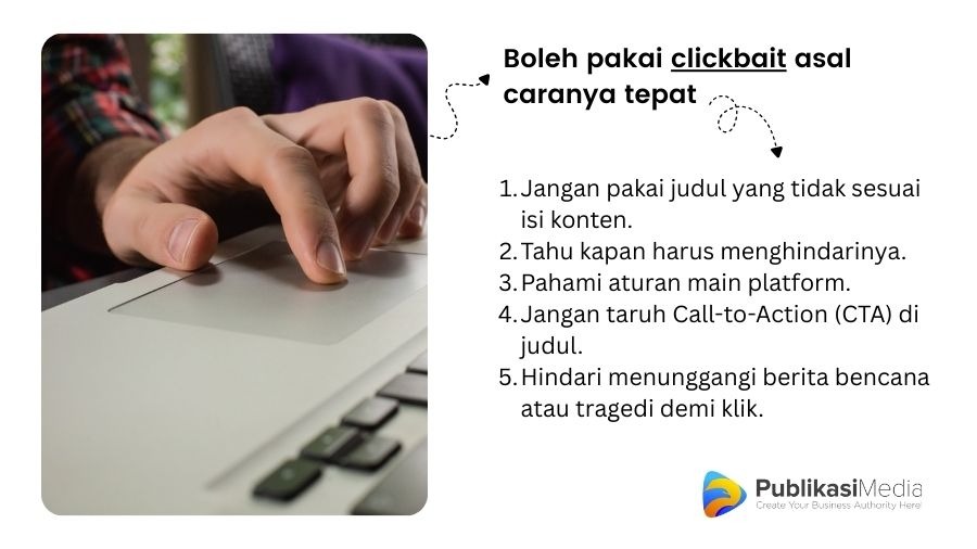 Di artikel ini, Publikasimedia akan menjelaskan sampai Anda mendapatkan jawaban: apakah penggunaan clickbait sah atau tidak.