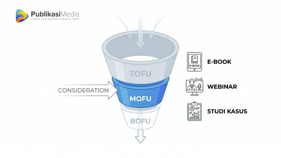 Selanjutnya, tahap MOFU bertujuan mengubah traffic menjadi prospek (leads) yang berkualitas.