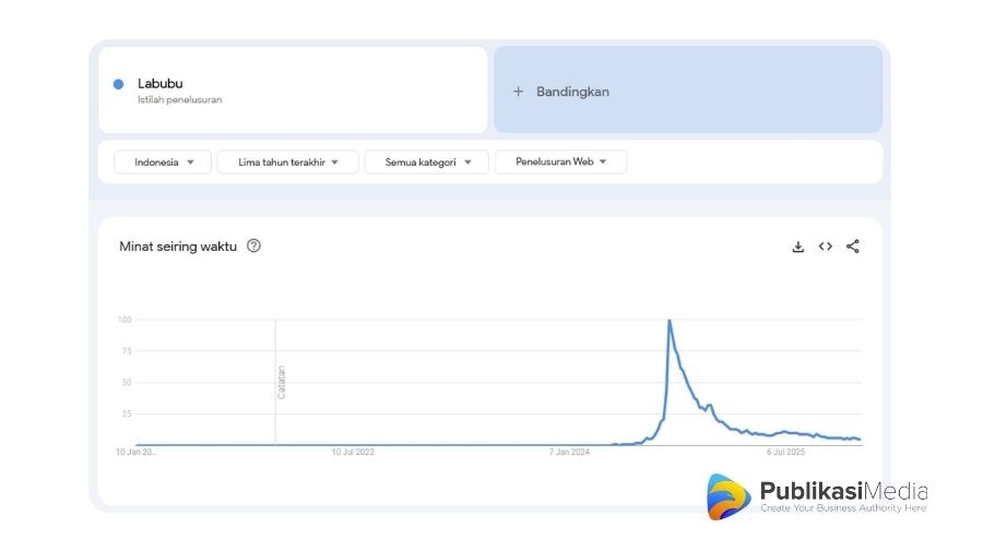 Sebagai gambaran, di bawah ini adalah perbandingan grafik popularitas Google Trends antara topik yang bersifat evergreen dan konten trending: